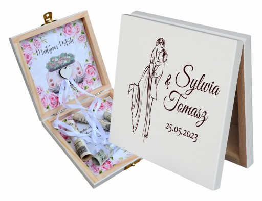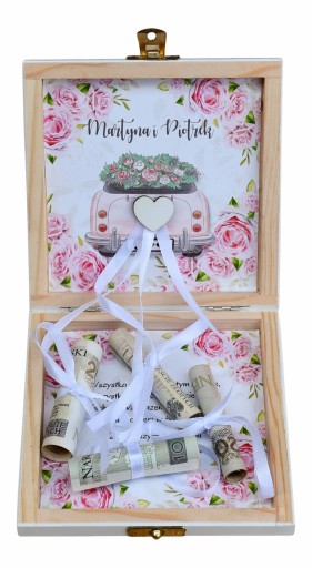 Chcesz elegancko wręczyć prezent w postaci gotówki? Szukasz pomysłu czym zastąpić popularną kopertę? Mamy dla Ciebie rozwiązanie - pudełko na pieniądze na ślub, wesele, dla młodej pary.