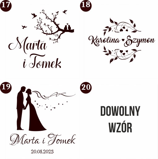 NADRUK na eleganckim papierze, w środku imiona młodych - data ślubu, Twoje życzenia oraz podpis.
