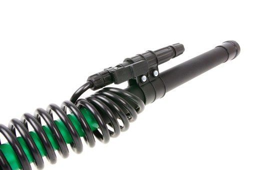 Spiralny wężyk lancy opleciony jest dookoła , dzięki czemu unika się splątania podczas pracy .
