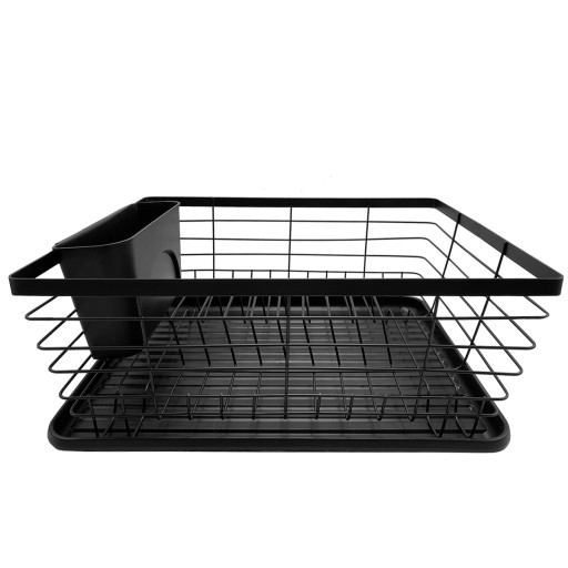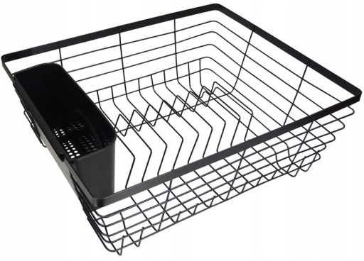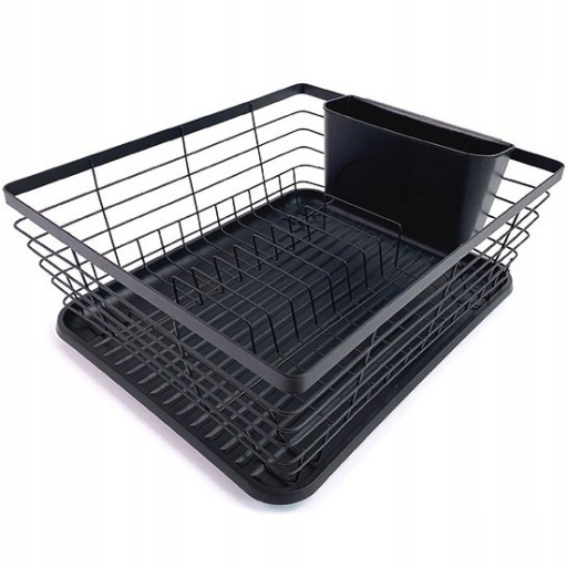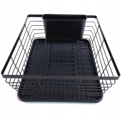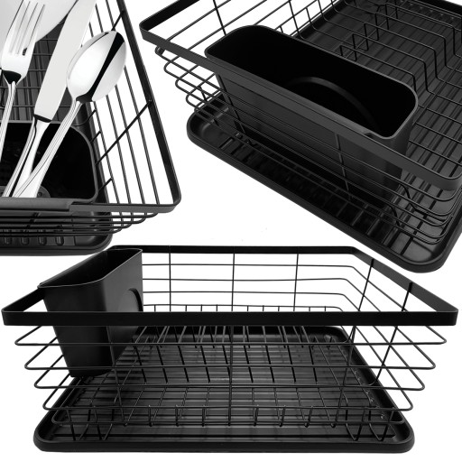 wysoka jakość a także trwała i metalowa konstrukcja. Tacka wykonana z żywicy zabezpiecza blat przed zamoczeniem. Zestaw zawiera również plastikowy, dwukomorowy ociekacz na sztućce. Metalowa czarna suszarka jest eleganckim rozwiązaniem do każdej kuchni.