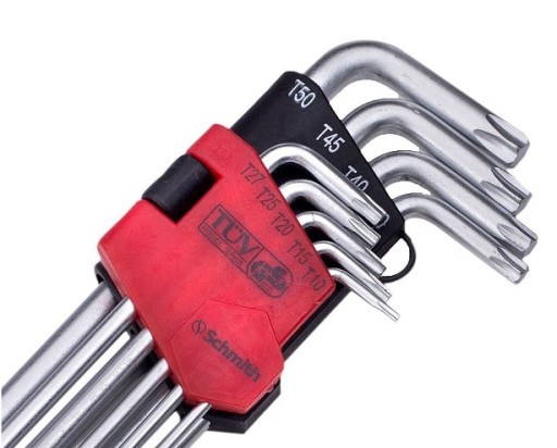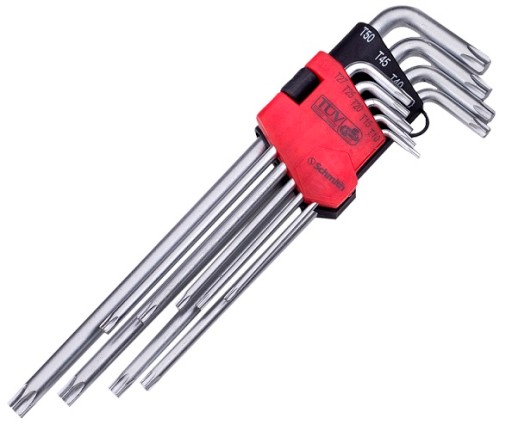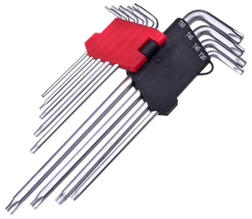 - Rozmiary kluczy w zestawie: T10 - T15 - T20 - T25 - T27 - T30 - T40 - T45 - T50