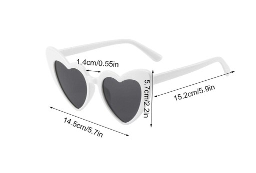 Okulary serca w kolorze białym z personalizowanymi naklejkami.