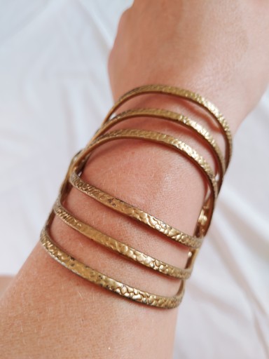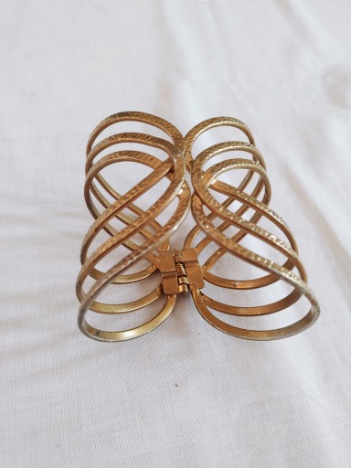 bransoleta Bransoletka metalowa w kolorze złotym, otwierana na sprężynie, wysokośc 7,5cm, szerokośc 7cm x 6cm, używany w stanie bardzo dobrym, zapraszam na inne aukcje