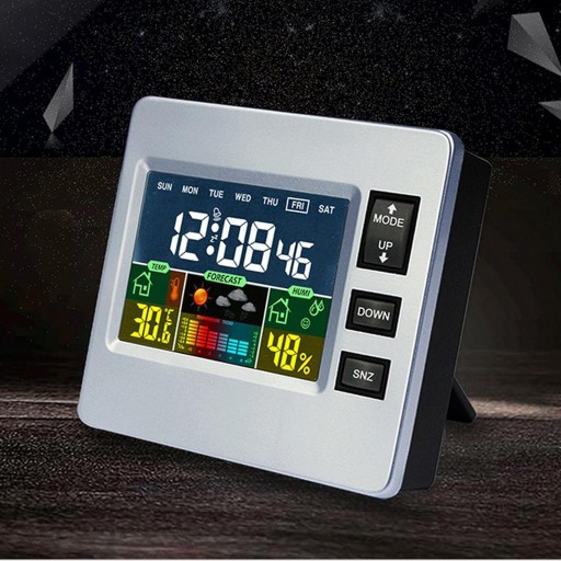Wielofunkcyjny zegar higrotermograf z kolorowym wyświetlaczem LCD o szerokim zakresie