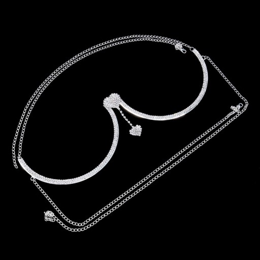 Materiał: stop i kryształ górski. Naszyjnik z łańcuszkiem do biustonosza z kryształkami może pasować na imprezę, która wygląda pięknie.