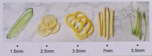 Wkładki pozwalające kroić w plastry 1,5mm, 2,5mm, 3,5mm