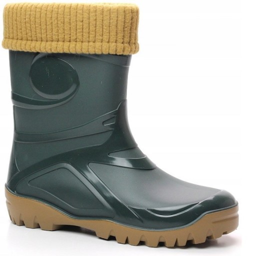 Kalosze damskie, młodzieżowe, męskie ocieplane, zimowe z wyjmowanym wełnianym ciepłym ocieplaczem DEMAR YOUNG 2 FUR - zielone