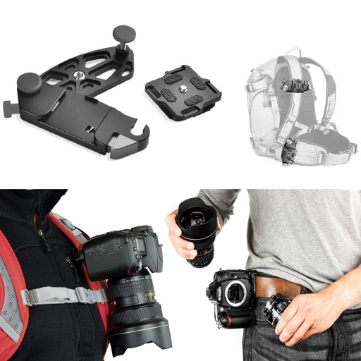 - Przymocuj klips aparatu do większości pasków naramiennych, pasków lub pasków, aby wygodnie nosić kamerę sportową, automat do kart, lustrzankę cyfrową i aparat bezlusterkowy.