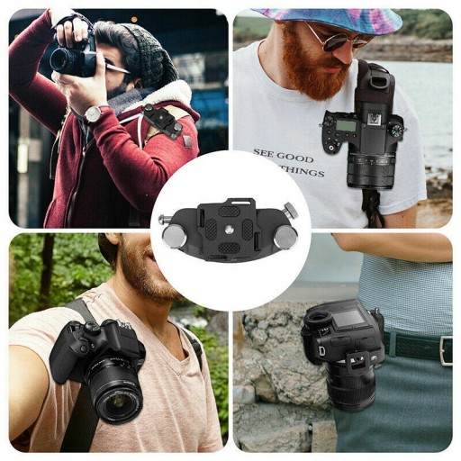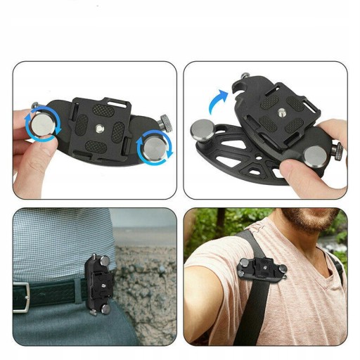 - Przymocuj klips aparatu do większości pasków naramiennych, pasków lub pasków, aby wygodnie nosić kamerę sportową, automat do kart, lustrzankę cyfrową i aparat bezlusterkowy.