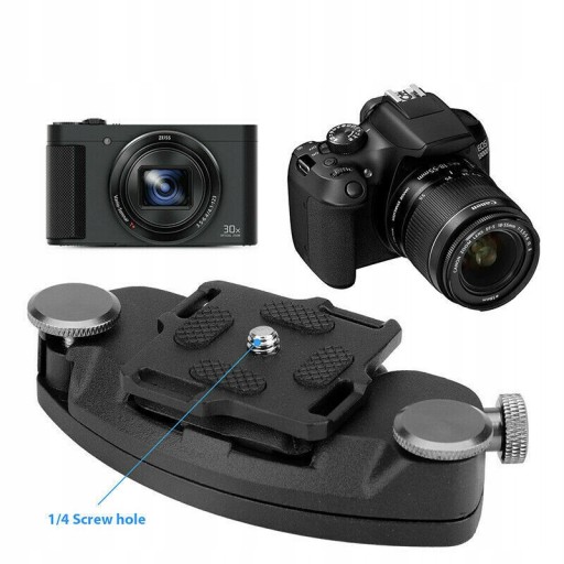 - Przymocuj klips aparatu do większości pasków naramiennych, pasków lub pasków, aby wygodnie nosić kamerę sportową, automat do kart, lustrzankę cyfrową i aparat bezlusterkowy.
