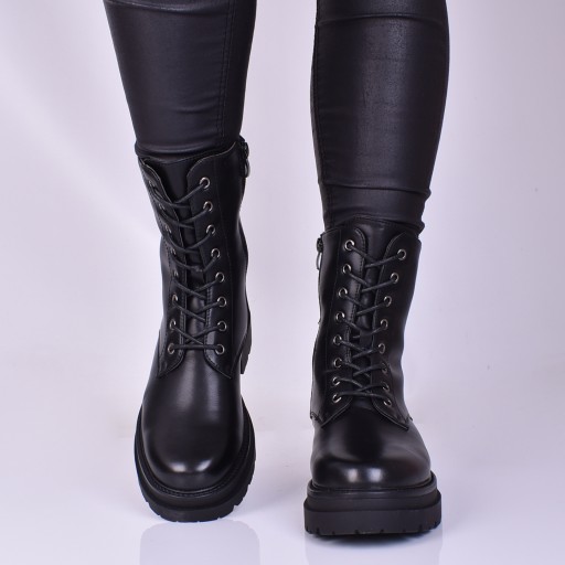 MODNE SKÓRZANE BOTKI Z KLASYCZNYM SZNUROWANIEM ORAZ ZAMKIEM