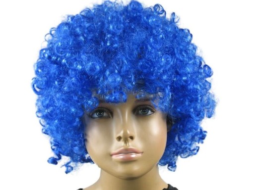 PERUKA AFRO / KLAUN - NIEBIESKA / CHABROWE - CIEMNIEJSZE NIEBIESKIE KRĘCONE WŁOSY