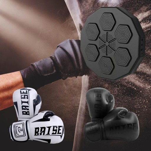 PAKIET: Otrzymasz 1x muzyczną maszynę bokserską, 1 parę rękawic bokserskich dla dorosłych i 1 parę rękawic bokserskich dla dzieci.