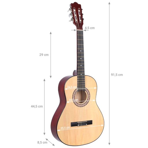 BD 36 to solidnie wykonana, bardzo ładnie brzmiąca i czysto strojąca ✅ gitara klasyczna typu 3/4, która dzięki pomniejszonemu, niepełnowymiarowemu korpusowi i miękkim, nylonowym strunom niemęczącym rąk jest idealna do ćwiczeń, szczególnie dla małych dzieci rozpoczynających naukę gry na tym instrumencie, a także osób bardziej zaawansowanych chcących rozwijać i realizować swoje muzyczne pasje.