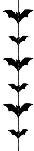 Girlanda w kształcie nietoperzy w kolorze czarnym. Będzie idealną dekoracją przyjęcia Halloweenowego. Girlanda została wykonana z papieru oraz sznurka, który łatwo zawiesić w dowolnym miejscu. Najlepiej sprawdzi się zawieszona na ścianie, w oknie, przy suficie lub w ogrodzie.