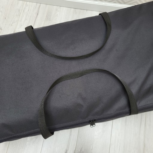 Pokrowiec wykonano z tkaniny wózkowej, która jest wytrzymała i odporna na uszkodzenia mechaniczne oraz na warunki atmosferyczne (wodoodporna). Worek zamykany na zamek ekspresowy podwójny. Posiada solidny pas, które ułatwią przenoszenie wózka.