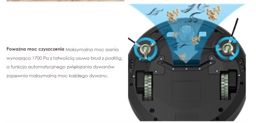 - : Ten odkurzacz robota jest napędzany mocnym silnikiem cyfrowym, zapewniającym dużą moc ssania. Jego unikalna, bezszczotkowa struktura ssąca sprawia, że sierść zwierząt domowych i brud z łatwością trafiają do kosza bez plątania się, jak w przypadku szczotek rolkowych.