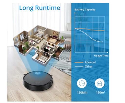 - 【Co zyskujesz】 Automatyczny odkurzacz Acekool-Cl1, pilot zdalnego sterowania, podstawa ładująca, zasilacz, duży pojemnik na śmieci 500 ml, 1 filtr HEPA, 4 szczotki boczne, szczotka do czyszczenia maszyny