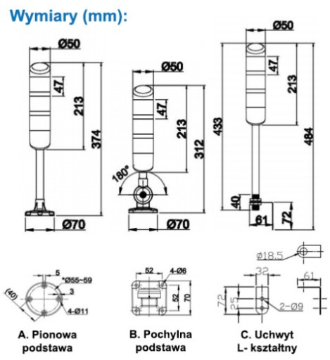 Parametry takie jak: napięcie, kolory oraz ilość poziomów, długości przewodów, światło migające/stałe lub podstawa lampy można dowolnie modyfikować pod zamówienie po wcześniejszej wycenie. Aukcja dotyczy przedmiotu z wymienionymi po lewej parametrami !!