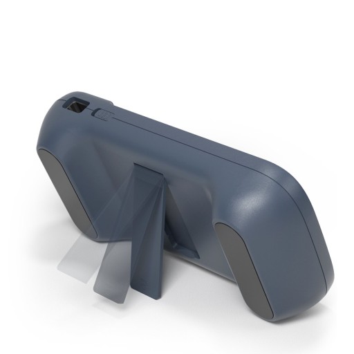Tył obudowy został wygodnie wyprofilowany, tak aby wygodnie obsługiwać kamerę. Kamera może leżeć na płasko, może być trzymana w dłoni jak również może zostać postawiona na rozkładanej nóżce w która urządzenie zostało wyposażone.