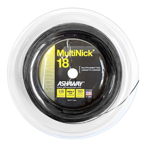 Naciąg squashowy MultiNick® 18 łączy w sobie włókna nylonowe o dużej wytrzymałości na rozciąganie, z unikalną powłoką z żywicy poliuretanowej. Doskonałe czucie dzięki budowie wielowłóknistej. Powłoka z żywicy poliuretanowej dla doskonałej trwałości. Doskonały zarówno dla profesjonalistów jak i amatorów. Idealny dla graczy lubiących podcięcia i grę rotacyjną.