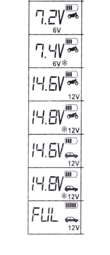 - Etap 8 - Spoczynek: Prostownik odetnie zasilanie po pełnym naładowaniu akumulatora, po pojawieniu się na wyświetlaczu słowa FULL;