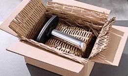 Karton jest cięty na materiał amortyzujący o strukturze plastra miodu.