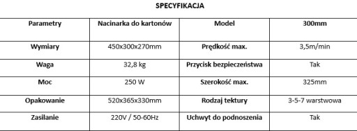 -> Maszyna tnie karton na maty o szerokości maksymalne 325mm.