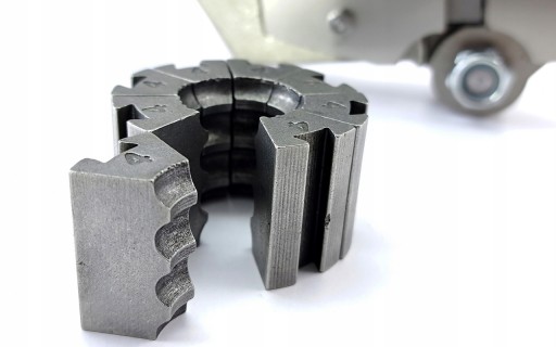 Masywna stalowa zakuwarka umożliwia zaciśnięcie końcówki węża w układzie klimatyzacji samochodowej za pomocą ręcznej pompy hydraulicznej.