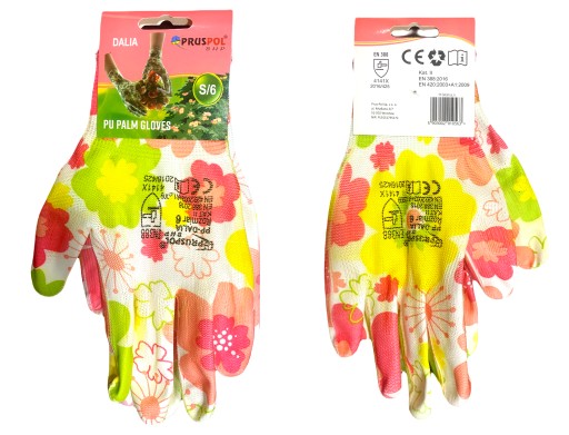 Rękawice na zawieszce do ogrodu dla Pań i dzieci , ochronne poliestrowe, powlekane w części chwytnej poliuretanem. Dzięki kolorystyce umilają prace ogrodowe oraz porządki przydomowe.