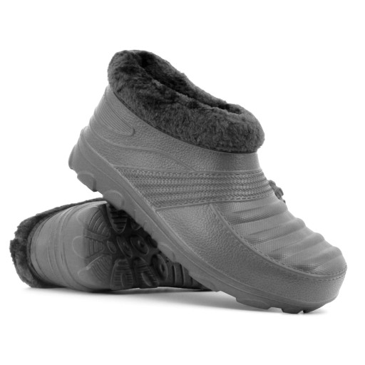 KALOSZE PIANKOWE SZARE SOLIDNE, MOCNE, WYTRZYMAŁE I LEKKIE IDEALNE DO UŻYTKOWANIA CODZIENNEGO, OCIEPLANE FUTERKIEM PRZYMOCOWANYM DO BUTA