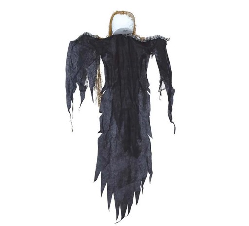 Dekoracyjna czaszka z rogami, wykonana z plastiku. Czacha ma brązowe zabarwienia w oczodołach, nosie zębach oraz rogi. Posiada ruchomą żuchwę oraz pusty środek, dzięki czemu można włożyć do środka np lampkę świetlną.