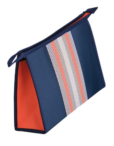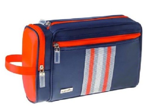 Wykonana z ładnego, wysokiej jakości, nieprzemakalnego materiału. Kolorystyka bardzo oryginalna, połączenie granatu i pomarańczu z jasnym odcieniem szarości. Ładny, sportowy, oryginalny design męskiej kosmetyczki. Zamykana na suwak. W środku dodatkowa kieszonka z podszewki. Na zewnątrz wygodna rączka do noszenia. Z przodu eleganckie, metalowe logo REED.