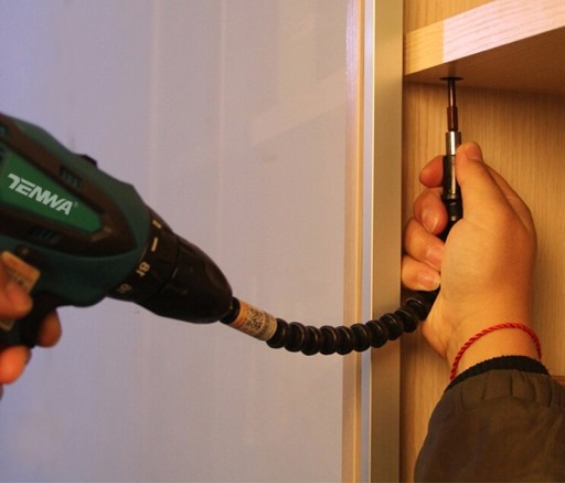 ✅Chcesz przewiercić śrubę w miejscu, pod którym nie zmieści się wiertarka? Po prostu wygnij przedłużacz i przyłóż ją do jednego z jego końców. Gdy końcówka przedłużacza kręci się, pobudza do ruchu sprężyny, co umożliwia skręcenie śruby.