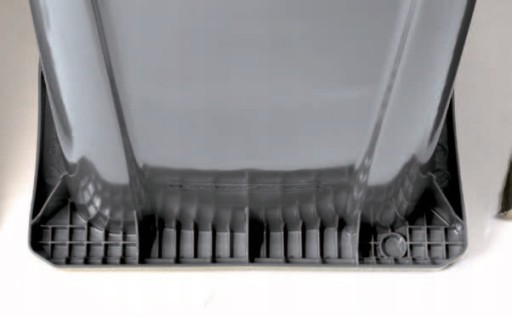 Wysoka odporność mechaniczna pojemników potwierdzona certyfikatem RALGZ 951/1, osiągnięta poprzez zastosowanie 100% nowego materiału – bez dodatku materiału pochodzącego z recyklingu,