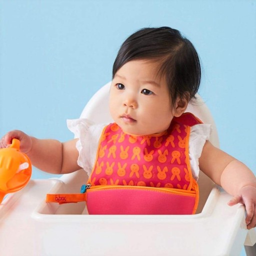 Śliniak firmy B.Box wyposażony w silikonową, szeroką, bezpieczną kieszeń.