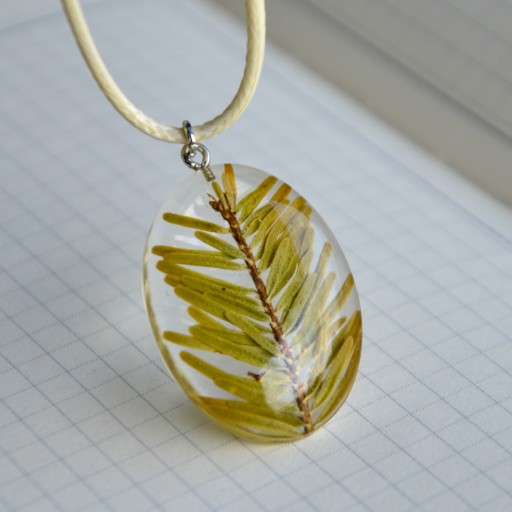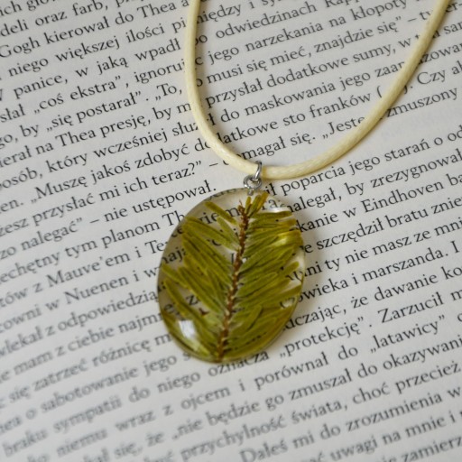 Naszyjnik, wisiorek handmade z żywicy epoksydowej w kształcie owalu z Jodłą pospolitą.