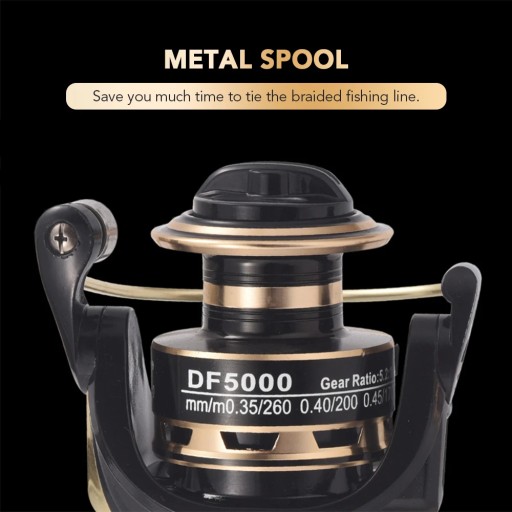⛵ Spinningowy kołowrotek wędkarski zapewnia maksymalną jedwabiście gładką wydajność, sprawia, że możesz cieszyć się wędkarską podróżą. ⛵Specyfikacja: ⛵Model: DF1000/DF2000/DF3000/DF4000//DF5000/DF6000/DF7000 (opcjonalnie) ⛵Materiał: Metal #43; Nylon ⛵ Model ⛵ Łożysko kulkowe ⛵ Przełożenie ⛵ Pojemność żyłki (mm/m) ⛵ Waga ⛵ DF1000 ⛵ 13 #43;1BB ⛵ 5,2:1 ⛵ 0,18/200 0,20/160 0,25/120 ⛵ 240 g ⛵ DF2000 ⛵ 13 1BB ⛵ 5,2: 1 ⛵ 0,18/200 0,20/160 0,25/120 ⛵ 244G ⛵ DF3000 ⛵ 13 #43; 1BB ⛵ 5,2: 1 ⛵ 0,20/180 0,25/150 0,30/120 ⛵ 248G ⛵ DF4000 ⛵ 13 #43; 1BB ⛵ 5.2: 1 ⛵ 0,25/220 0,30/150 0,35/100 ⛵ 284G ⛵ DF5000 ⛵ 13 #43; 1BB ⛵ 5,2: 1 ⛵ 0,28/200 0,33/150 0,35/120 ⛵ 289G ⛵ DF6000 ⛵ 13 #43; 1BB ⛵ 5,2: 1 ⛵ 0,30/270 0,35/240 0,40/160 ⛵ 420 g ⛵ DF7000 ⛵ 13 #43;1BB ⛵ 5,2:1 ⛵ 0,35/250 0,45/220 0,50/160 ⛵ 432 g ⛵ Lista opakowań: ⛵ Wirowanie
