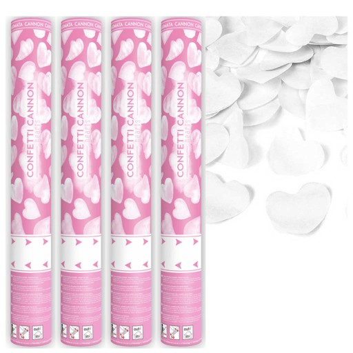 ZESTAW 4 sztuk TUB STRZELAJĄCYCH - KONFETTI Z BIAŁYMI SERCAMI – idealna atrakcja każdej imprezy