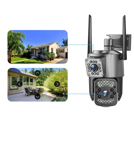 ВНЕШНЯЯ КАМЕРА С WIFI PTOT, 2 ОБЪЕКТИВА 2+2 МП, ЗУМ 2 В 1, ОБНАРУЖЕНИЕ УДАРОВ 2K