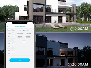 - ✅Ta mobilna kamera do monitoringu ma praktyczną funkcję harmonogramu. Aplikacja UBox pozwala łatwo ustawić kilka pożądanych godzin pracy, a następnie kamera działa tylko w ustawionych godzinach.