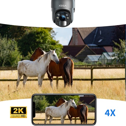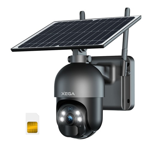 Xega 3G/4G LTE KAMERA SOLARNA ZEWNĘTRZNA OBROTOWA 355°/95° 2K 3MP 4x ZOOM CYTROWY IP66, Z KARTĄ SIM W ZESTAWIE