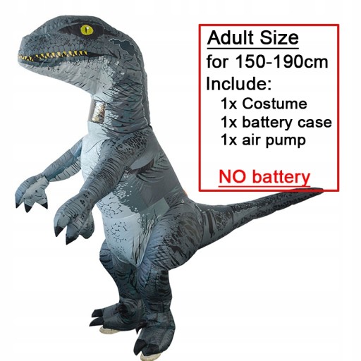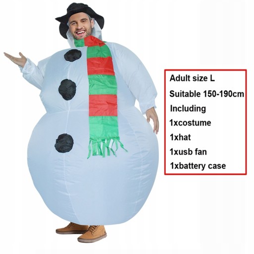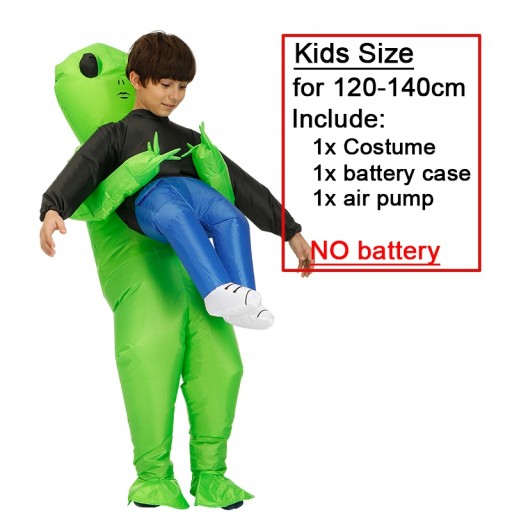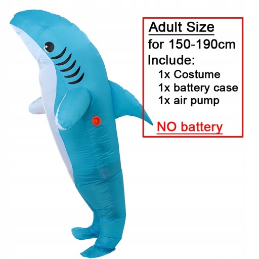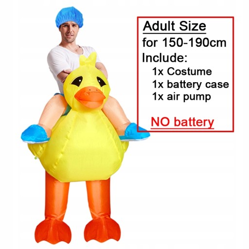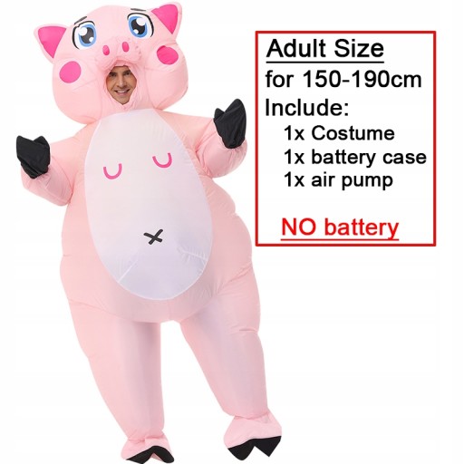 Pakiet1 * kostium1 * wentylator USB1 * obudowa baterii (bez baterii)Materiał:100% poliesterFunkcje:Wentylatory o prędkości utrzymują kostium napompowany całą drogę, można użyć opakowanie na baterie (zainstalować baterię 4xAA)Nadaje się na imprezy, Halloween, przyjęcia urodzinowe, parki, zdjęcia, transmisje na żywo itp.