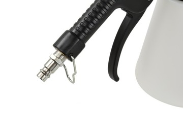 Przyrząd z jednej strony podłączany jest do sieci sprężonego powietrza(wejście 1/4''), z drugiej do odpowietrznika układu hamulcowego.Podciśnienie wytworzone w zbiorniku pozwala na wyssanie płynu hamulcowego z układu bez konieczności ,,pompowania'' pedałem hamulca.
