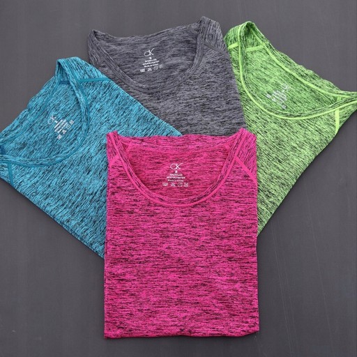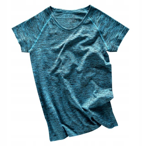 Aktywny Okrągły Dekolt Krótki Rękaw Melanżowy T-Shirt Joga Tees Damski L Niebieski