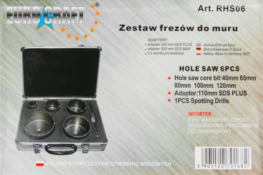 НАБОР КОРОНОЧНЫХ ПИЛОВ ДЛЯ БЕТОННЫХ СТЕН НАБОР ИЗ 6 ШТ. АДАПТЕР SDS ФРЕЗЫ