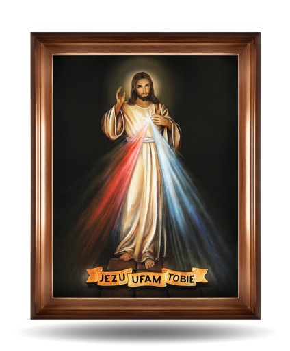 Umieść ten obraz w swoim domu, w miejscu modlitwy lub w kaplicy, aby stał się centrum spokoju i odczuwania obecności Boga. Obraz jest symbolem nieograniczonej miłości, ofiary i nadziei. Patrząc na ten obraz, możesz odnaleźć siłę, pocieszenie i wiarę, które towarzyszą Ci w codziennym życiu.