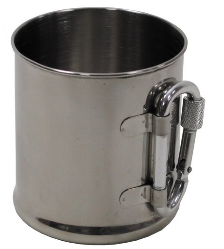 Wygodny i bardzo przydatny nie tylko w turystyce kubek stalowy. Rączka kubka jest składana, wykonaną ją z karabińczyka, dzięki czemu kubek łatwo przymocować do bagażu.