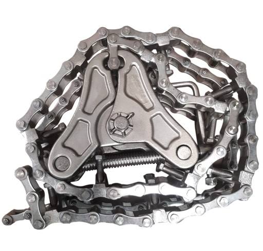 Łańcuch można dopasować do odpowiedniej średnicy rury, usuwając ogniwo łańcucha i dźwignie ustawiające.