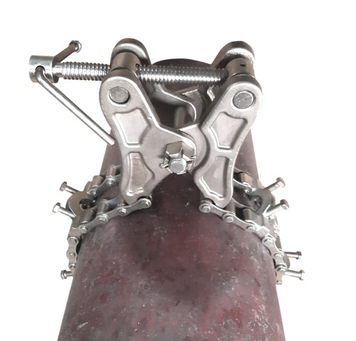 Centrowniki łańcuchowe ciężkie z ręcznym napinaczem kleszczowym. Wykorzystywane do szybkiego i precyzyjnego pozycjonowania przesyłowych rur stalowych, podczas montażu i prefabrykacji głównie w terenie. Złożenie rur ze sobą zajmuje niewiele czasu i gwarantuje zachowanie równej odległości między nimi, co ma duży wpływ na poprawność spawania i jakość wykonanej spoiny.